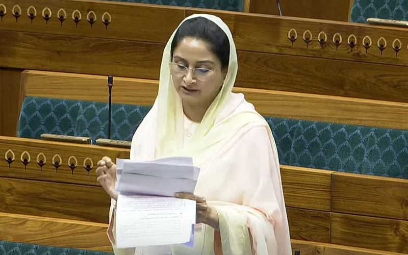 ਹਰਸਿਮਰਤ ਕੌਰ ਬਾਦਲ ਨੇ ਸੰਸਦ ‘ਚ ਆਪਣਾ ਪ੍ਰਸਤਾਵ ਰੱਖਦਿਆਂ ਕਿਹਾ ਹੈ ਕਿ ਪੰਜਾਬ ਨਾਲ ਫ਼ਰਕ ਕੀਤਾ ਜਾ ਰਿਹਾ ਹੈ। ਕਿਸਾਨਾਂ ਵੱਲੋਂ ਪਿੱਛਲੇ ਪੰਜ ਸਾਲਾਂ ਤੋਂ ਧਰਨੇ ਲਗਾਏ ਜਾ ਰਹੇ ਹਨ ਫਿਰ ਵੀ ਉਹਨਾਂ ਦੀਆਂ ਮੰਗਾਂ ਬਾਰੇ ਬਜਟ ਵਿੱਚ ਜਿਕਰ ਨਹੀਂ ਕੀਤਾ ਗਿਆ ਹੈ। ਉਹਨਾਂ ਅੱਗੇ ਕਿਹਾ ਕਿ ਸਾਰੀਆਂ 22 ਫ਼ਸਲਾਂ ’ਤੇ ਘੱਟੋ-ਘੱਟ ਸਮਰਥਨ ਮੁੱਲ ਨੂੰ ਹਕੀਕਤ ਬਦਲਣ ਲਈ ਫੰਡ ਅਲਾਟ ਕੀਤੇ ਜਾਣੇ ਚਾਹੀਦੇ ਹਨ। ਇਸਦੇ ਨਾਲ ਹੀ ਉਹਨਾਂ ਨੇ ਸਵਾਲ ਉਠਾਇਆ ਕਿ ਸੈਕੰਡਰੀ ਅਤੇ ਉੱਚ ਸਿੱਖਿਆ ਵਾਲੇ ਬੇਰੁਜ਼ਗਾਰ ਨੌਜਵਾਨਾਂ ਦੀ ਪ੍ਰਤੀਸ਼ਤਤਾ 2002 ਜੋ 35 ਪ੍ਰਤੀਸ਼ਤ ਸੀ ਹੁਣ ਵੱਧ ਕੇ 2022 ‘ਚ 65 ਪ੍ਰਤੀਸ਼ਤ ਕਿਵੇਂ ਹੋ ਗਈ ਹੈ।