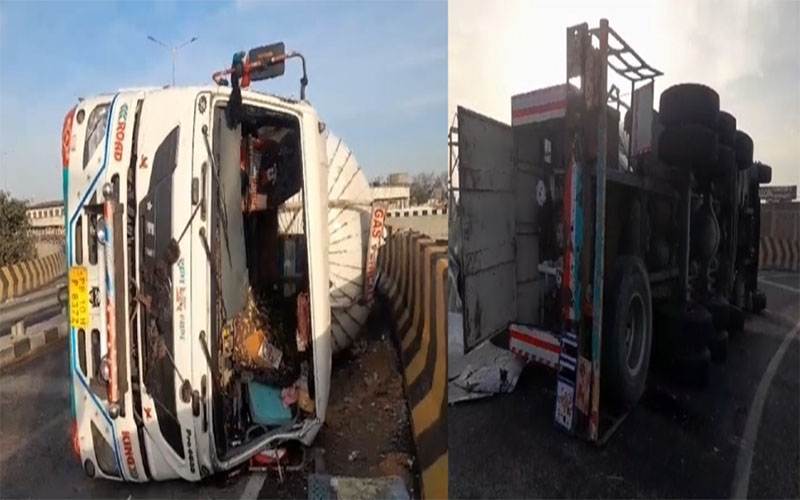 ਲੁਧਿਆਣਾ ‘ਚ ਪੁਲ ‘ਤੇ ਪਲਟਿਆ CO2 ਗੈਸ ਨਾਲ ਭਰਿਆ ਟੈਂਕਰ