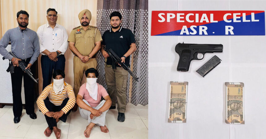 ਅੰਮ੍ਰਿਤਸਰ ਦਿਹਾਤੀ ਪੁਲਿਸ ਨੇ ਯੂ.ਕੇ. ਸਥਿਤ ਗੈਂਗਸਟਰ ਮਾਡਿਊਲ ਦਾ ਪਰਦਾਫਾਸ਼ ਕਰਦਿਆਂ ਰਾਮ ਤੀਰਥ ਨੇੜੇ ਤੋਂ 2 ਗੈਂਗਸਟਰਾਂ ਨੂੰ ਗ੍ਰਿਫ਼ਤਾਰ ਕੀਤਾ ਹੈ। ਦੱਸ ਦਈਏ ਕਿ ਦੋਸ਼ੀਆਂ ਕੋਲੋਂ ਪਿਸਤਲ ਮੈਗਜ਼ੀਨ ਸਮੇਤ ਹਥਿਆਰ ਅਤੇ 1 ਲੱਖ ਰੁਪਏ ਦੀ ਜਾਅਲੀ ਕਰੰਸੀ ਬਰਾਮਦ ਕੀਤੀ ਗਈ ਹੈ। ਸਪੈਸ਼ਲ ਸੈਲ ਅਤੇ ਥਾਣਾ ਲੋਪੋਕੇ ਪੁਲਿਸ ਨੂੰ ਮਿਲੀ ਸੂਚਨਾ ਅਨੁਸਾਰ, ਅਜੇਪਾਲ ਸਿੰਘ ਉਰਫ਼ ਅਜੇ ਅਤੇ ਰਪੇਸ਼ ਕੁਮਾਰ ਰਾਏ, ਵਾਸੀ ਗੰਡੀਵਿੰਡ (ਤਰਨਤਾਰਨ), ਨਾਜਾਇਜ਼ ਅਸਲਾ ਅਤੇ ਜਾਅਲੀ ਕਰੰਸੀ ਸਪਲਾਈ ਕਰ ਰਹੇ ਸਨ। ਦੋਹਾਂ ਨੂੰ ਰਾਮ ਤੀਰਥ ਨੇੜੇ ਬੋਪਾਰਾਏ ਬਾਜ ਸਿੰਘ ਵਿਖੇ ਪੁਲਿਸ ਵੱਲੋਂ ਕਾਬੂ ਕਰ ਲਿਆ ਗਿਆ ਹੈ। ਨਾਲ ਹੀ ਦੱਸ ਦਈਏ ਕਿ ਪੁਲਿਸ ਨੇ ਥਾਣਾ ਲੋਪੋਕੇ ਵਿਖੇ ਦੋਸ਼ੀਆਂ ਵਿਰੁੱਧ ਭਾਰਤੀ ਦੰਡ ਸੰਹਿਤਾ ਦੀਆਂ ਧਾਰਾਵਾਂ 25, 54, 59 ਅਤੇ ਅਸਲਾ ਐਕਟ ਤਹਿਤ ਮਾਮਲਾ ਦਰਜ ਕਰ ਲਿਆ ਹੈ।