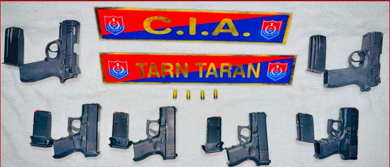 ਤਰਨਤਾਰਨ ਪੁਲਿਸ ਨੇ ਅੱਜ ਇੱਕ ਵੱਡੀ ਸਫ਼ਲਤਾ ਹਾਸਿਲ ਕਰਦਿਆਂ ਕੌਮਾਂਤਰੀ ਹਥਿਆਰ ਤਸਕਰੀ ਗਿਰੋਹ ਦੇ ਦੋ ਮੈਂਬਰਾਂ ਨੂੰ ਗ੍ਰਿਫ਼ਤਾਰ ਕਰਨ ਵਿੱਚ ਕਾਮਯਾਬੀ ਪ੍ਰਾਪਤ ਕੀਤੀ ਹੈ। ਗ੍ਰਿਫ਼ਤਾਰ ਕੀਤੇ ਗਏ ਮੁਲਜ਼ਮਾਂ ਦੀ ਪਹਿਚਾਣ ਅਰਸ਼ਦੀਪ ਸਿੰਘ ਅਤੇ ਸੂਰਜਪਾਲ ਸਿੰਘ ਵਾਸੀ ਪਿੰਡ ਲਖਨਾ ਵਜੋਂ ਹੋਈ ਹੈ। ਪੁਲਿਸ ਨੇ ਦੋਸ਼ੀਆਂ ਪਾਸੋਂ 6 ਪਿਸਤੌਲ ਅਤੇ ਕਈ ਜਿੰਦਾ ਕਾਰਤੂਸ ਬਰਾਮਦ ਕੀਤੇ ਹਨ। ਅਧਿਕਾਰੀਆਂ ਮੁਤਾਬਕ, ਇਹ ਦੋਵੇਂ ਸ਼ਖ਼ਸ ਪਾਕਿਸਤਾਨੀ ਤਸਕਰਾਂ ਨਾਲ ਸੰਬੰਧਿਤ ਗਤੀਵਿਧੀਆਂ ‘ਚ ਲਿਪਤ ਸਨ ਅਤੇ ਇਨ੍ਹਾਂ ਰਾਹੀਂ ਹਥਿਆਰ ਪੰਜਾਬ ‘ਚ ਭੇਜੇ ਜਾ ਰਹੇ ਸਨ।