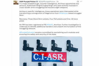 ਕਾਊਂਟਰ ਇੰਟੈਲੀਜੈਂਸ, ਅੰਮ੍ਰਿਤਸਰ ਦੀ ਸਰਹੱਦ ਪਾਰ ਹਥਿਆਰਾਂ ਦੀ ਤਸਕਰੀ ਰੋਕਣ ਵਿੱਚ ਵੱਡੀ ਸਫ਼ਲਤਾ