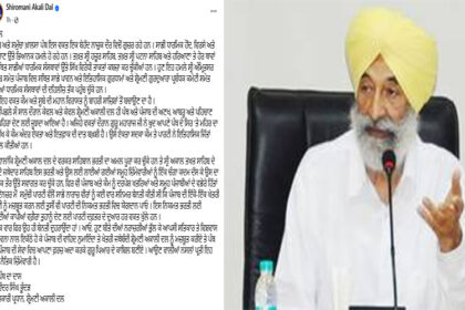ਅੱਜ ਅੰਮ੍ਰਿਤਸਰ ਸਥਿਤ ਤੇਜਾ ਸਿੰਘ ਸਮੁੰਦਰੀ ਹਾਲ ਵਿਖੇ ਸ਼੍ਰੋਮਣੀ ਅਕਾਲੀ ਦਲ ਦੇ…